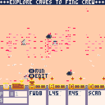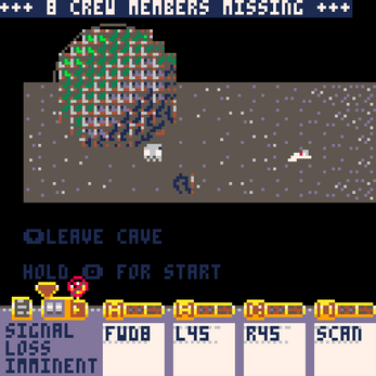 Since this is a Pico8 game, the controls are kept minimal: only the arrow keys and two buttons are used throughout the game: X and the key to the left of it (Z, Y or W - depending on your keyboard) which in the game is shown as O.You are controlling a lunar rover who had the unfortune to be stranded on mars during an emergency rescue operation. Equipped with a emergency rescue tether, the rover is tasked with reaching crew members in the martian caves and extract them to safety. BUT: inside the caves the radio signals controlling the rover no longer work. The rover needs to be programmed to reach the injured crew member - once the rover is close enough we can activate the extraction by pressing and holding the down key.